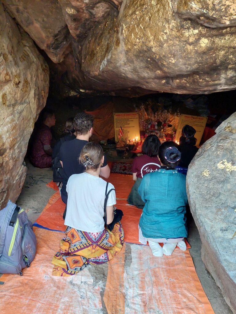 In dieser Höhle angekommen, erklärte Repa Gyatso, dass in einer Höhle Śāriputra meditierte und in der anderen Ananda. Die erste Höhle, die wir auf dem Weg fanden, ist die Höhle von Ananda. Sie gilt als Ort, an dem Ananda, der treue und persönliche Begleiter des Buddha, meditiert hat. Ananda spielte eine besondere Rolle in der frühen Überlieferung des Dharma. Als enger Begleiter Buddhas war er auf vielen seiner Wege an seiner Seite und hörte die Lehren mit offenem Herzen. Mit außergewöhnlicher Klarheit bewahrte er sie im Gedächtnis und trug später dazu bei, dass Buddhas Worte lebendig weitergegeben und schriftlich festgehalten werden konnten.