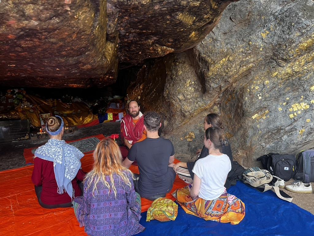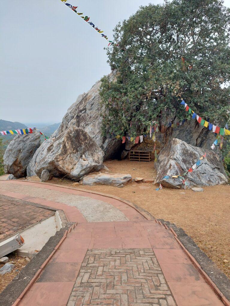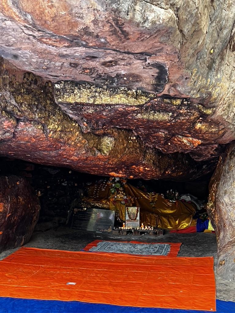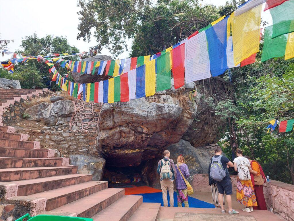 Kurz danach kamen wir zur Höhle von Śāriputra – sie liegt etwas weiter oben am Pfad. Śāriputra gilt als einer der weisesten und angesehensten Schüler Buddhas. Seine besondere Gabe lag in einer tiefen, klaren Einsicht in die Lehren – präzise und von großer innerer Tiefe getragen. Er war unermüdlich neugierig, wagemutig in seinen Gedanken und bereit, die gewohnten Konzepte zu sprengen, um tiefe Wahrheiten zu erkennen.